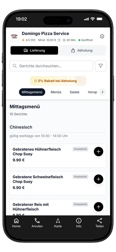 1 Nudelgericht nach Wahl und 1 kleiner gemischter Salat